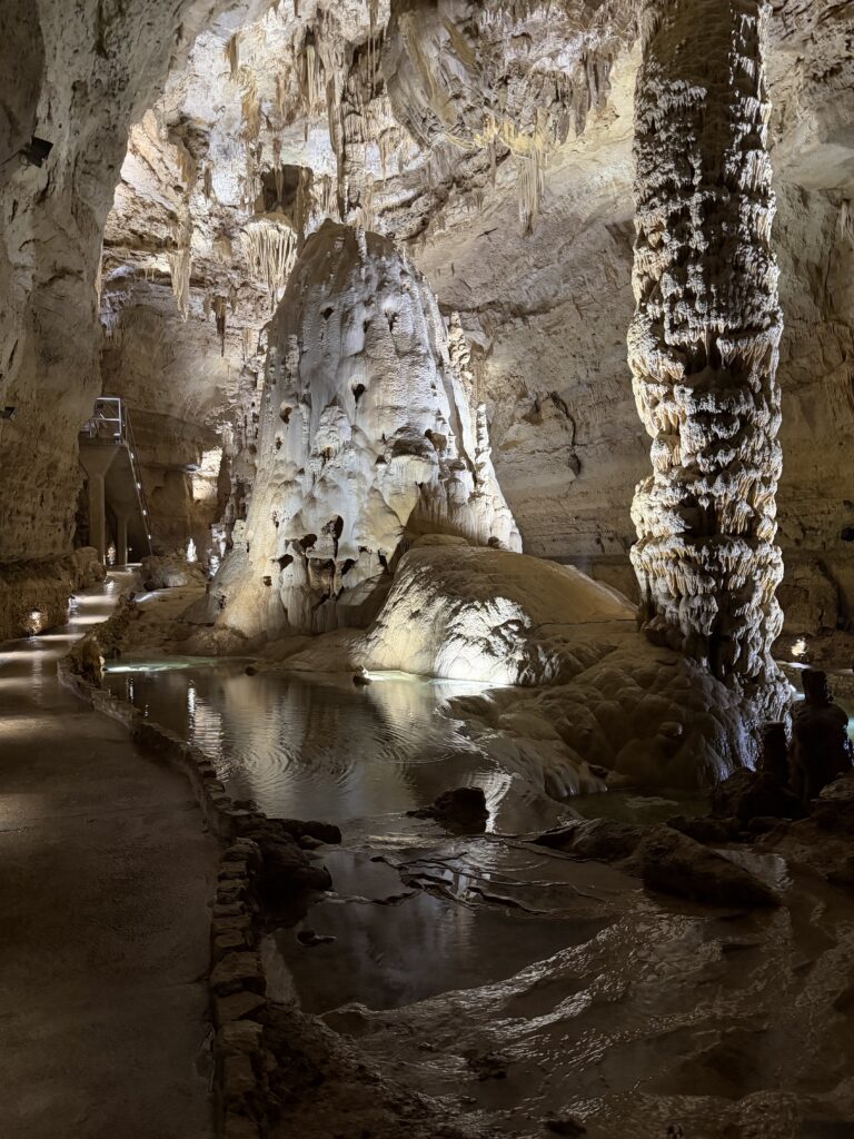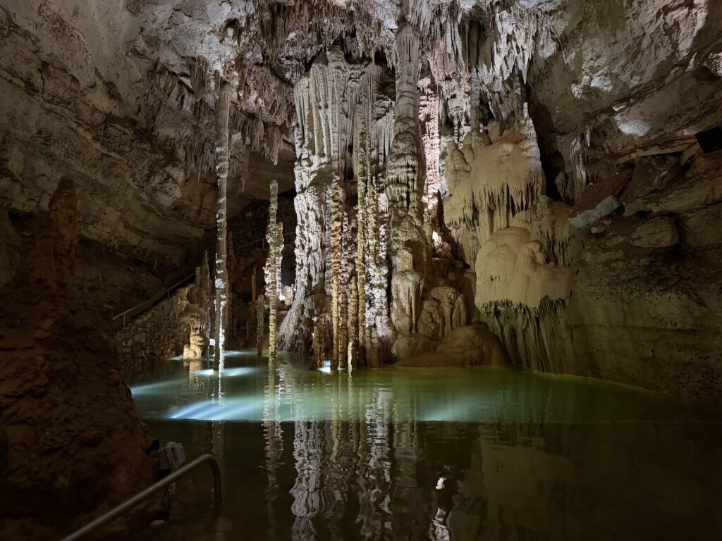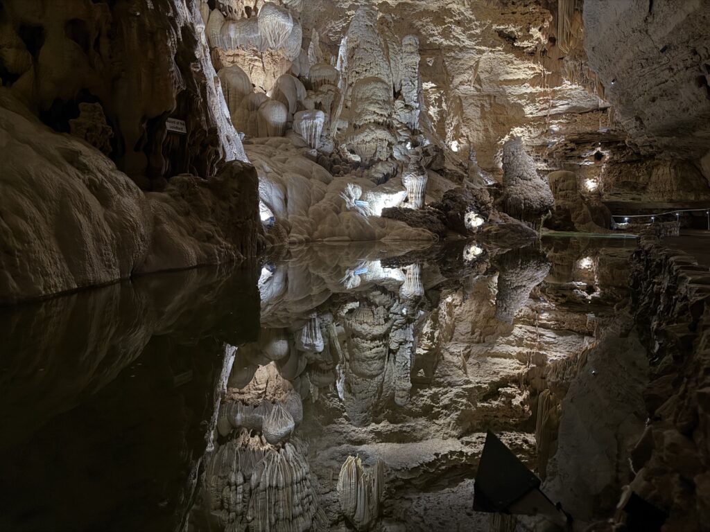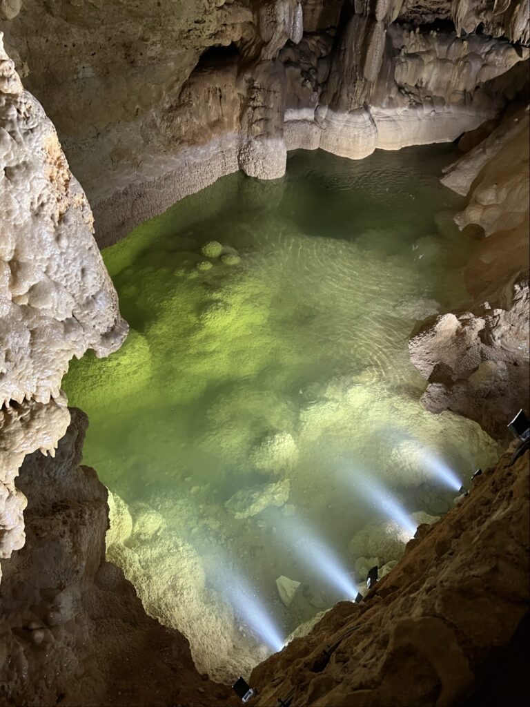 The water has slipped out of view for now, back into the places in the cavern we’ve never seen, back into the slow and ancient work of replenishing what drought has taken. What’s left behind is what’s always been there: the cavern, patient and still, shaped by water that comes when it comes and recedes when it must. The formations that took eons to build. The aquifer, below its muddy cap. Present. Waiting.