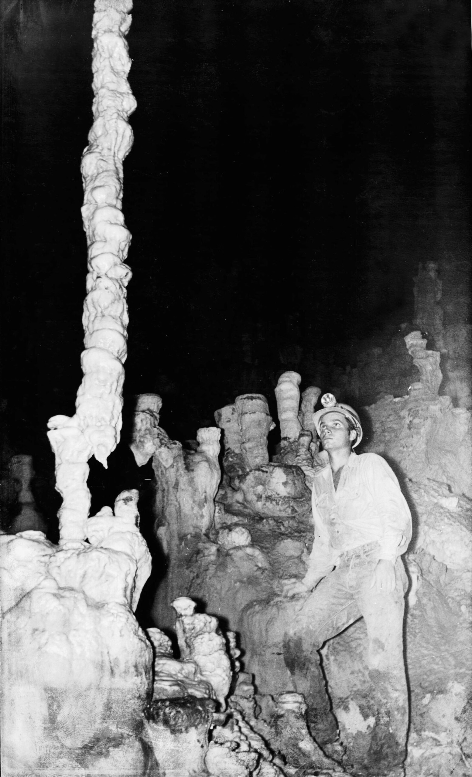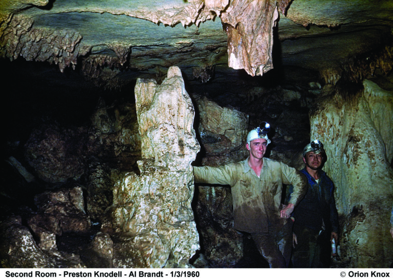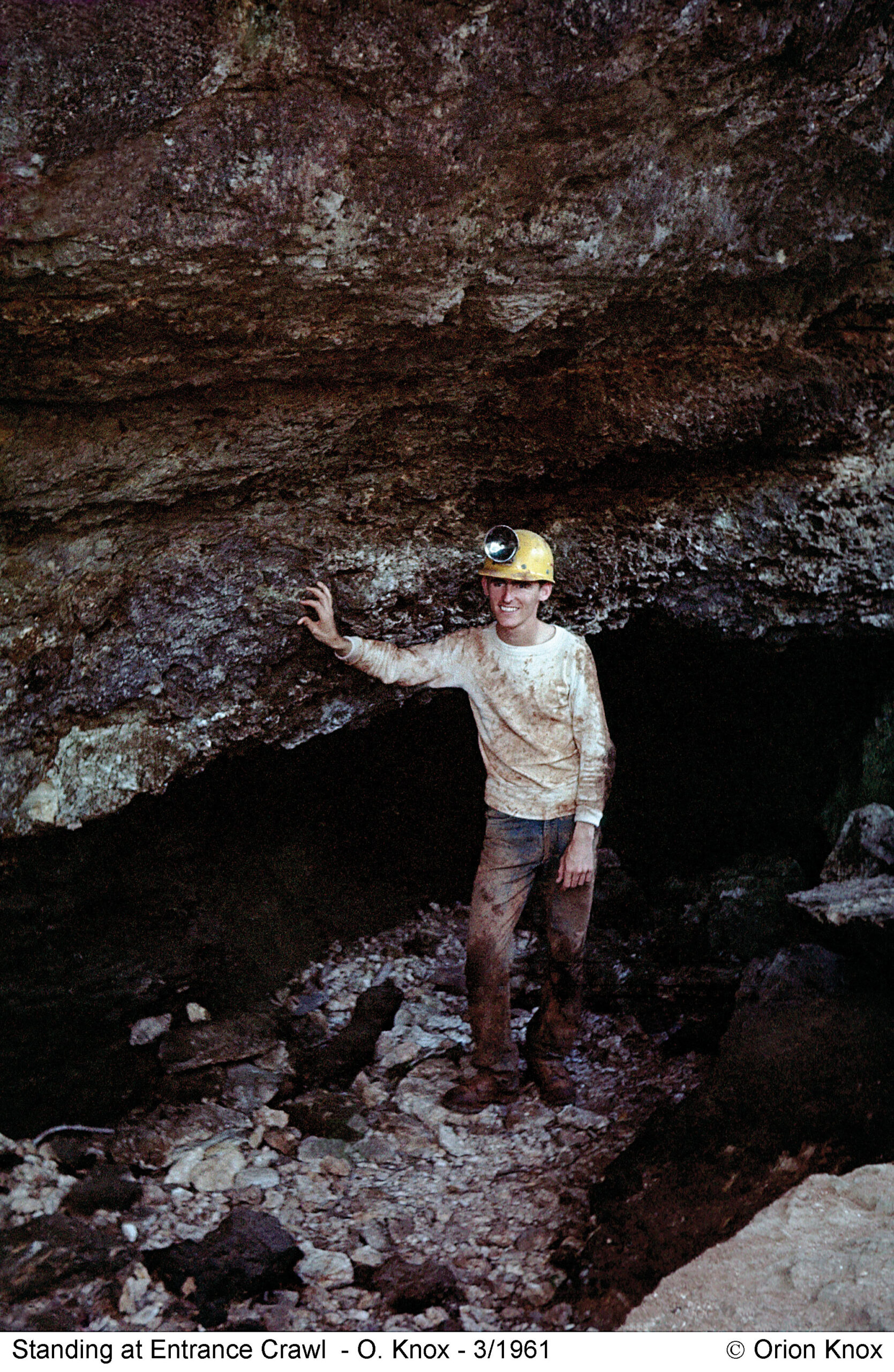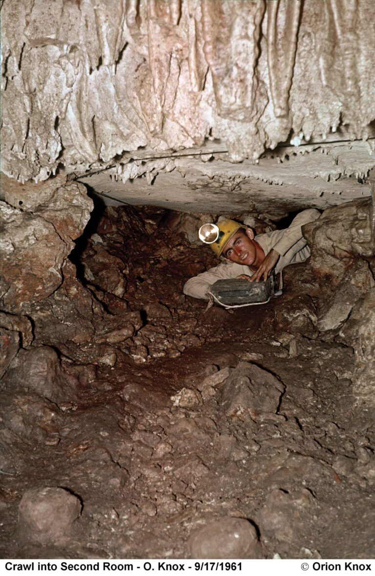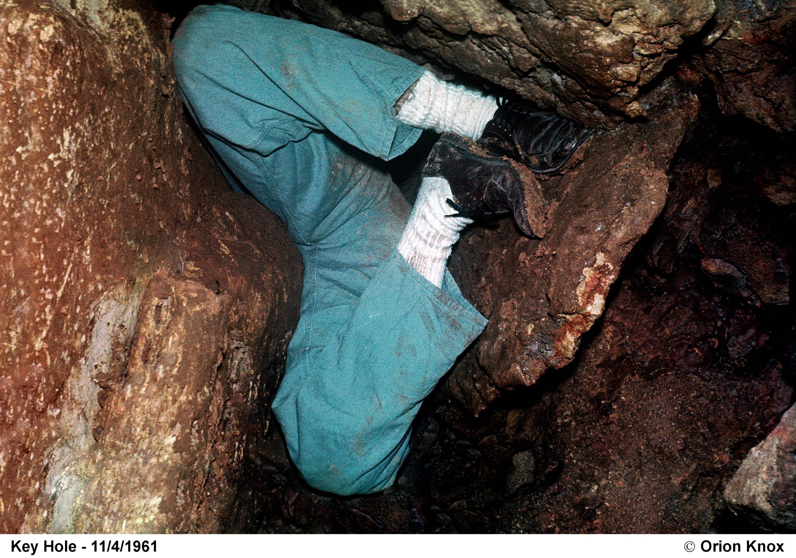 Orion Knox Jr makes the tight squeeze in the Discovery Cavern in 1961
