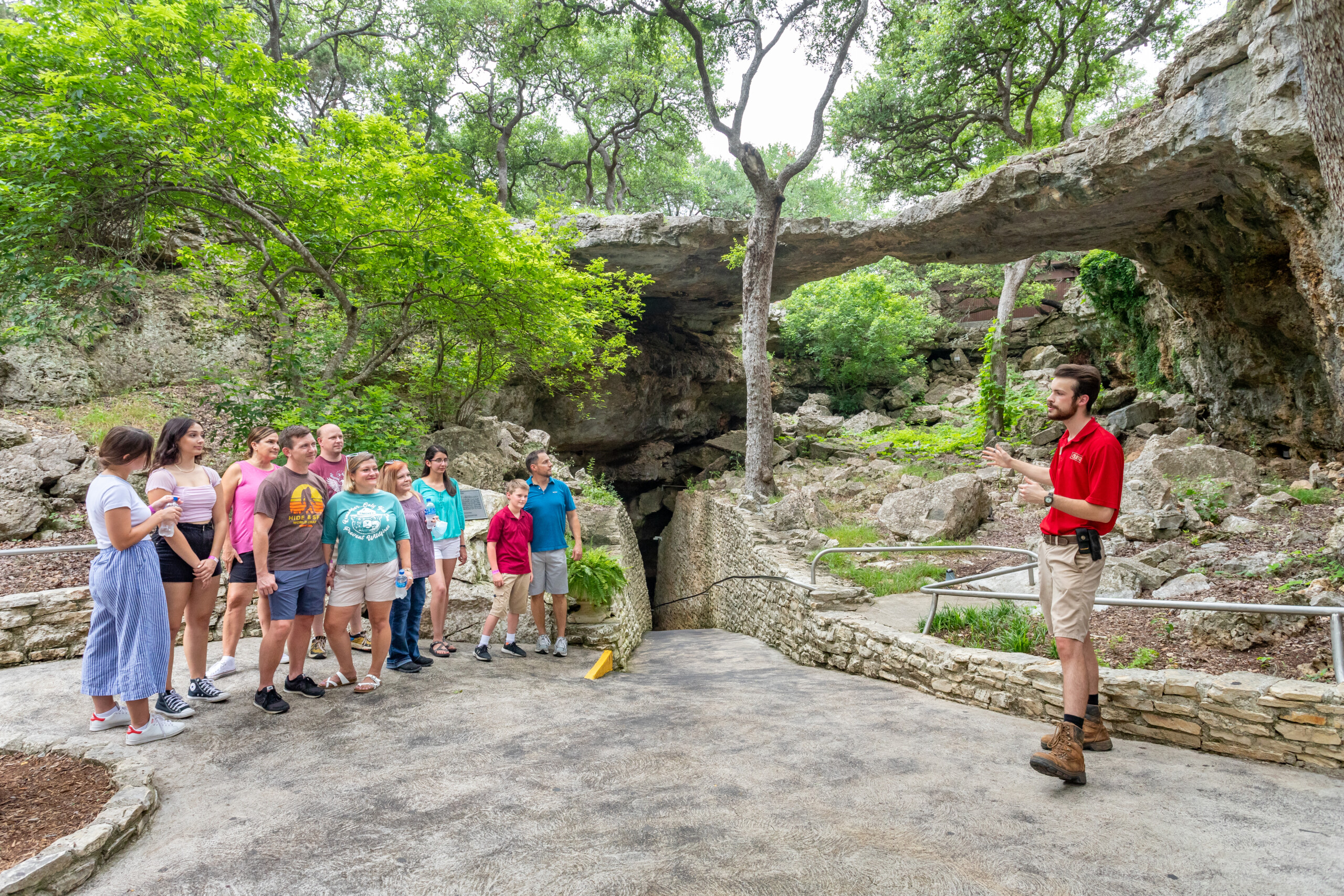 Natural Bridge Caverns Sinkhole at the start of the Discovery Cavern.