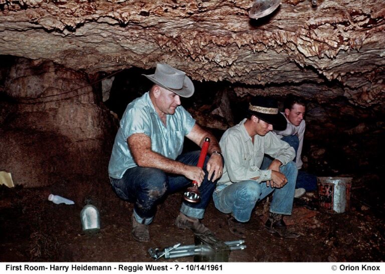 Harry Heidemann and Reggie Wuest in the Bear Pit during development of the Discovery Cavern in Natural Bridge Caverns