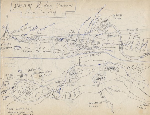 Orion Knox Jr made detailed sketches of various passages at Natural Bridge Caverns