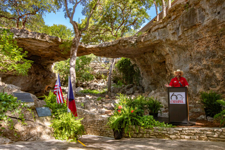 Brad Wuest, co-owner and president of Natural Bridge Caverns shares a few words at the 60th anniversary celebration of the cavern opening to the public.